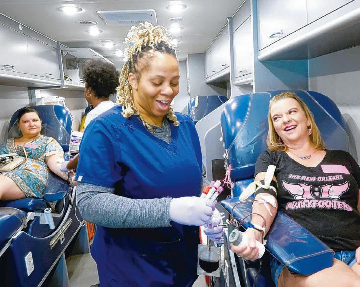 The Rolling Elvi and the Sassyracs were among organizers of arecent summer blood drive at Tipitina’sinNew Orleans. Donors were treated to dance performances, live music and the satisfaction of helping boost the blood supply in atime