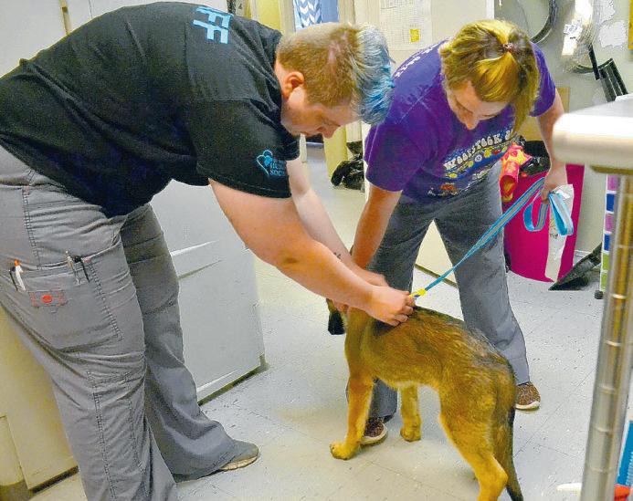 Veterinaryassistants inserta microchip into adog.It’s easy and relatively painless.