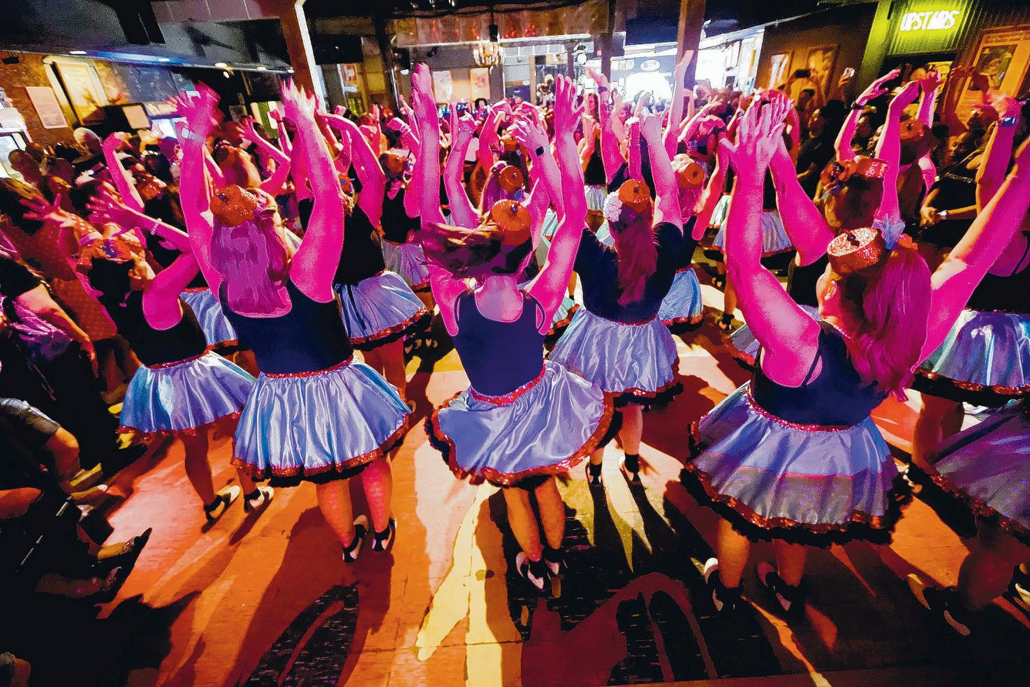 The Order of the Casket Girls performduring asummer blood drivebythe Rolling Elvi and the Sassyracs at Tipitina’sin NewOrleans on Sunday