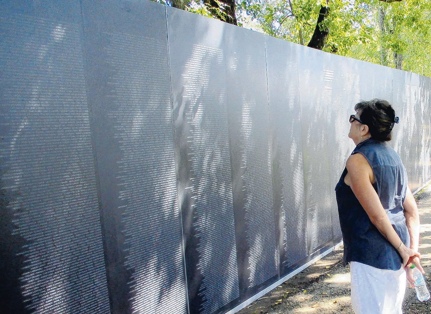 Avisitor to the Vietnam Traveling Memorial Wall stops to read the names of some of the men and women whowere killed during the Vietnam War. The wall reflects the deaths on adaily basis of the war which officially came to an end on April30, 1975.
