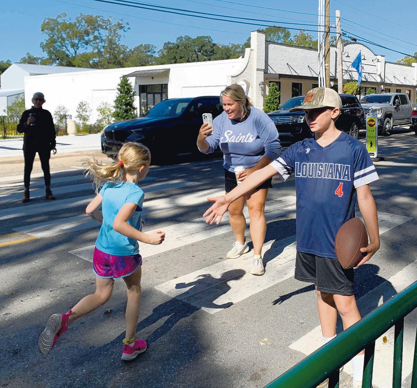 Videoing runners and cheering them on to finish strong is West Feliciana dance coachJulieanne Estep and her son, Colt.