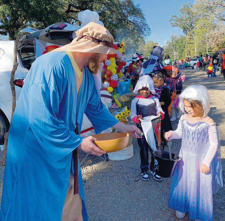 The festivities wereheld mainly on ablocked-off portion of College Streetathouses and trunk-or-treat vehicles. Event coordinator Bonnie Boyer was delighted with the turnout and said it’sfor the children and “the morethe merrier.” JTECPresident Smitty Schmidtsaidhewas pleased with the attendance andhe was “happy they had agood time” and to “join us again next year.” They counted and estimated that attendance —which was more than 600 children last year —exceeded more than 700 this year, they said. Some homeowners hadvery elaborate scary or funny Halloween decorations at their homes and yards, and others at trunks, tailgates and tables greeted costumed childrenand offered treats. Goodies included candy,popcorn, cotton candy,fruit drinks and more.