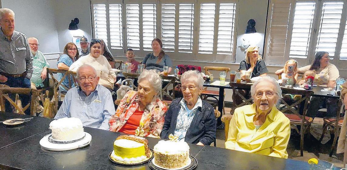 Attending areunion Sept. 7ofthe Fernand and Theresa CharlieFontenot family,from left, are Nolan Fontenot, of Jackson; his twin, Enola Vidrene, of Reddell;Aline Ardoin, of Mamou; and Louise Saynes, of Baker,who are also twins.