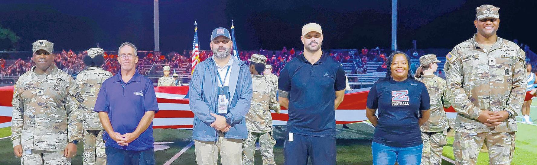 ZacharyHighSchool honorsveterans of theZachary Community School District whoattended the Broncos vs Bears game. Honored,from left, are Darren Spears, Michael Smelley, Ben Neciase, Ryan Napoli, Jermell Boutain and ArenteanisAdams.