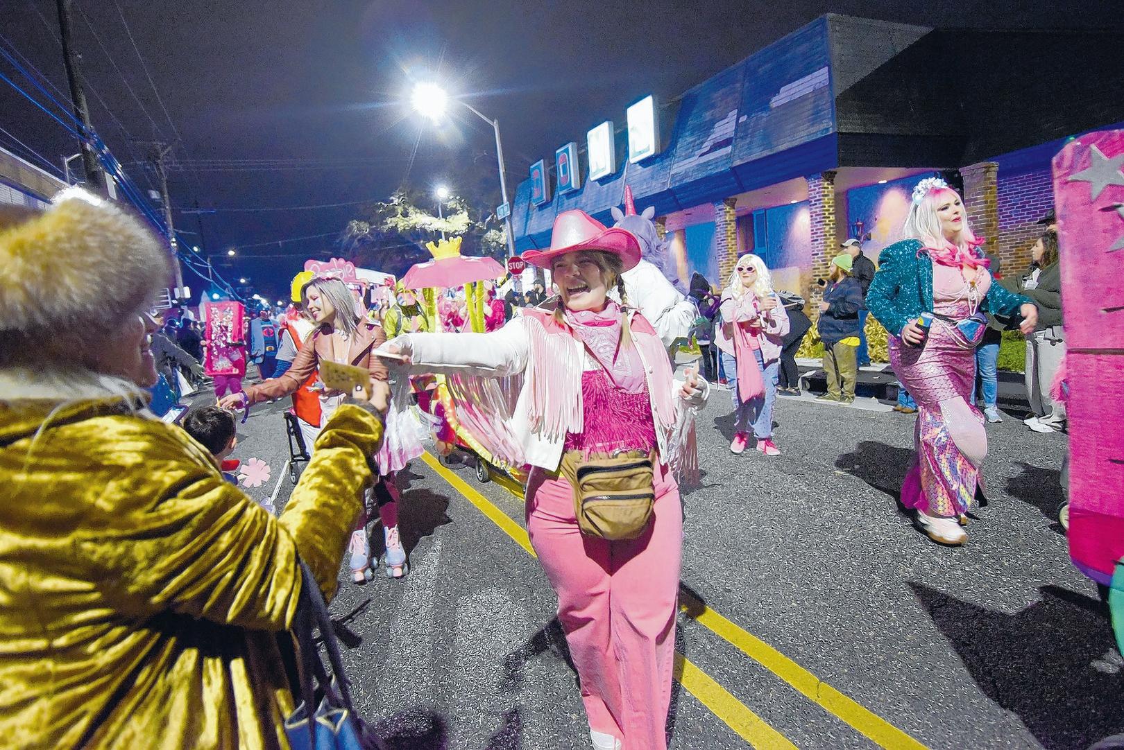 ABOVE: Riders celebrate as the Krewe of Rio Mardi Gras parade rolls in Lafayette on Saturday.
