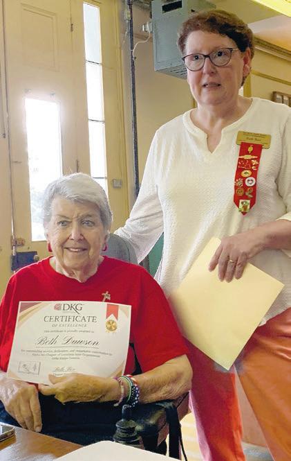 Beth Dawson, left with Beth Box, president of the Alpha Mu Chapter of Delta Kappa Gamma.