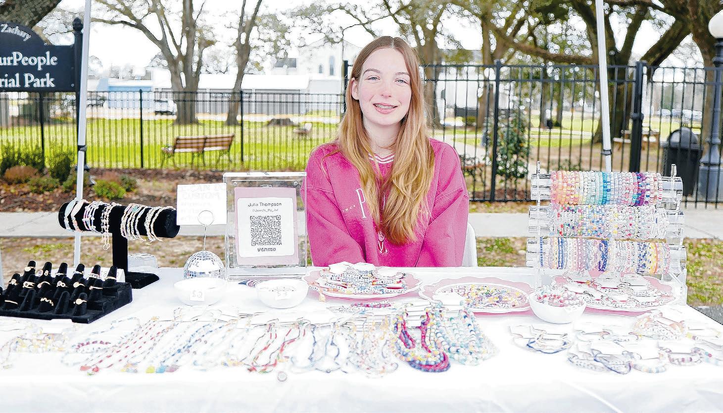 Zachary High freshman Julia Thompson, 15, with her custom jewelry line called Jewels by Jul. Her line includes custom bracelets, necklaces and rings at Zachary’s Farmers Market on Feb. 22.