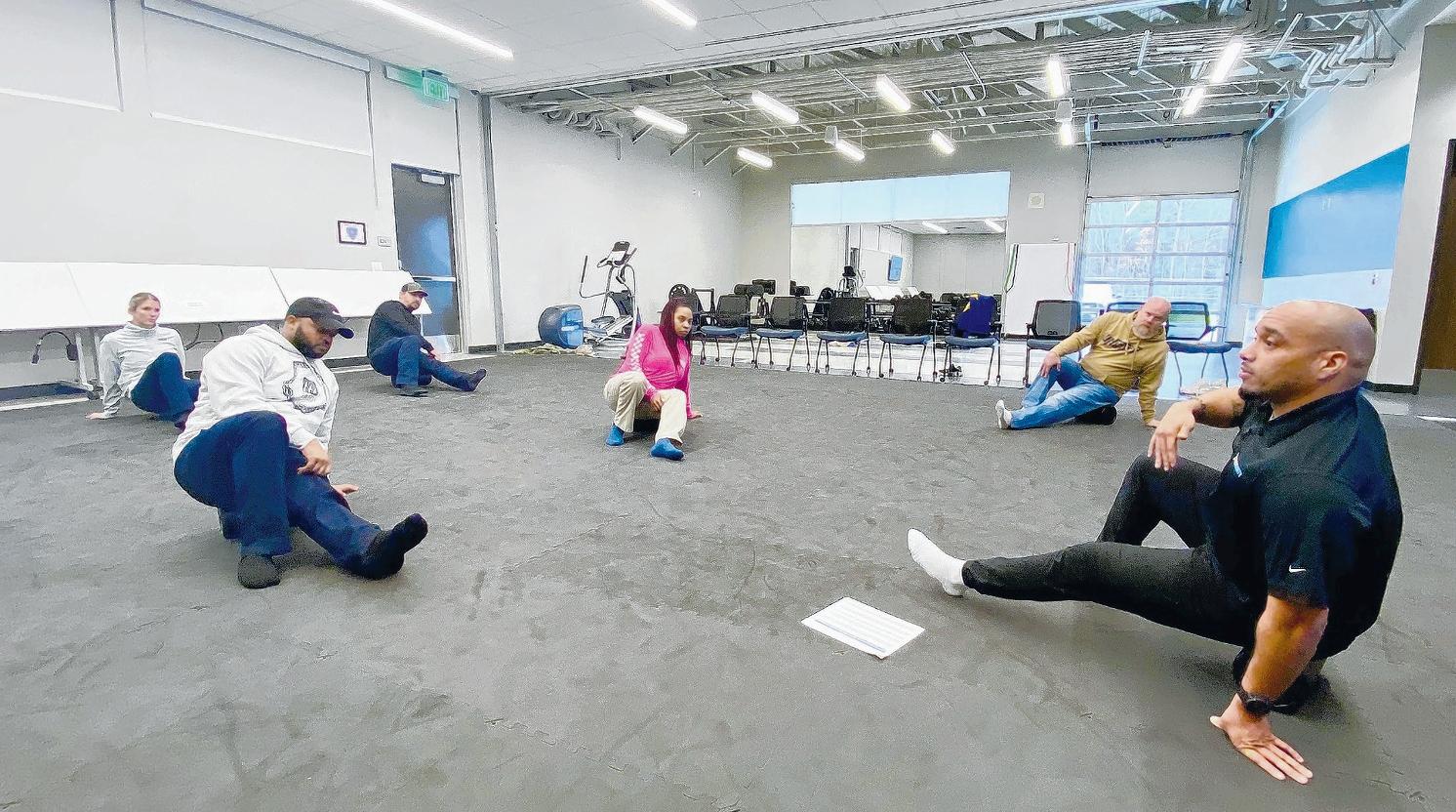On a recent Wednesday afternoon during one of the training sessions, a group of police officers took off their shoes and walked onto soft mats in the department’s gym They had just finished listening to a lesson on preparing nutritious snacks and meals, and now, it was time for a foam rolling session.