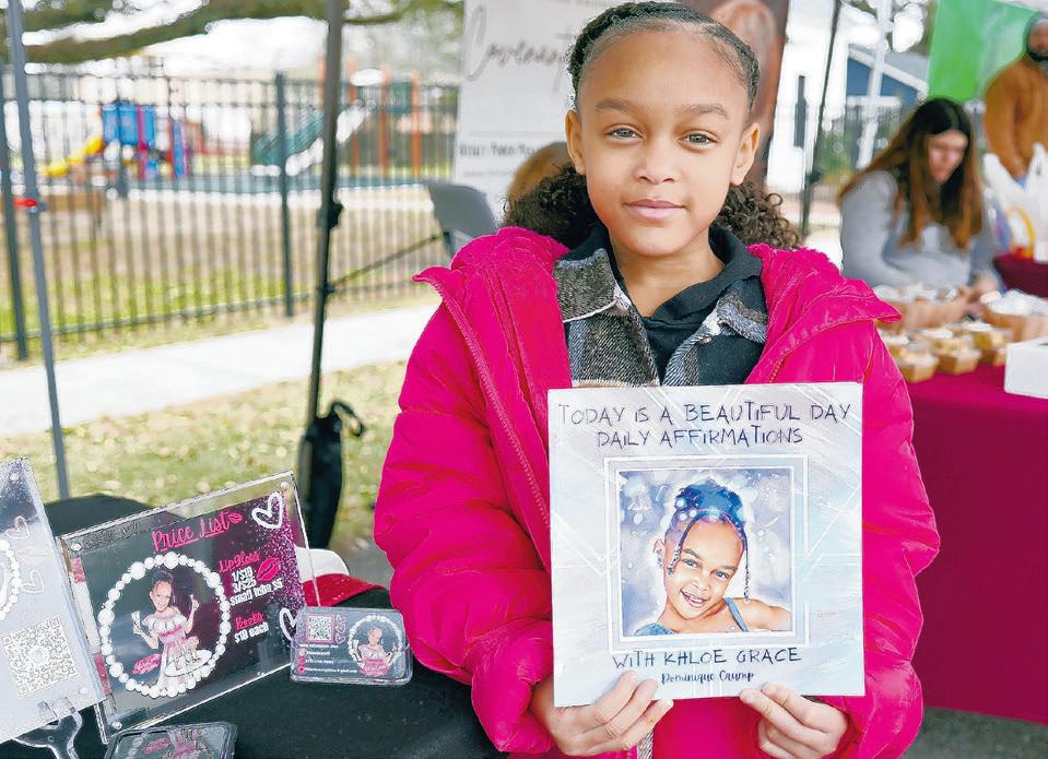 Khloe Grace, an 8-year-old author of 3 books, holds her best seller, ‘Today is a Beautiful Day Daily Affirmations.’