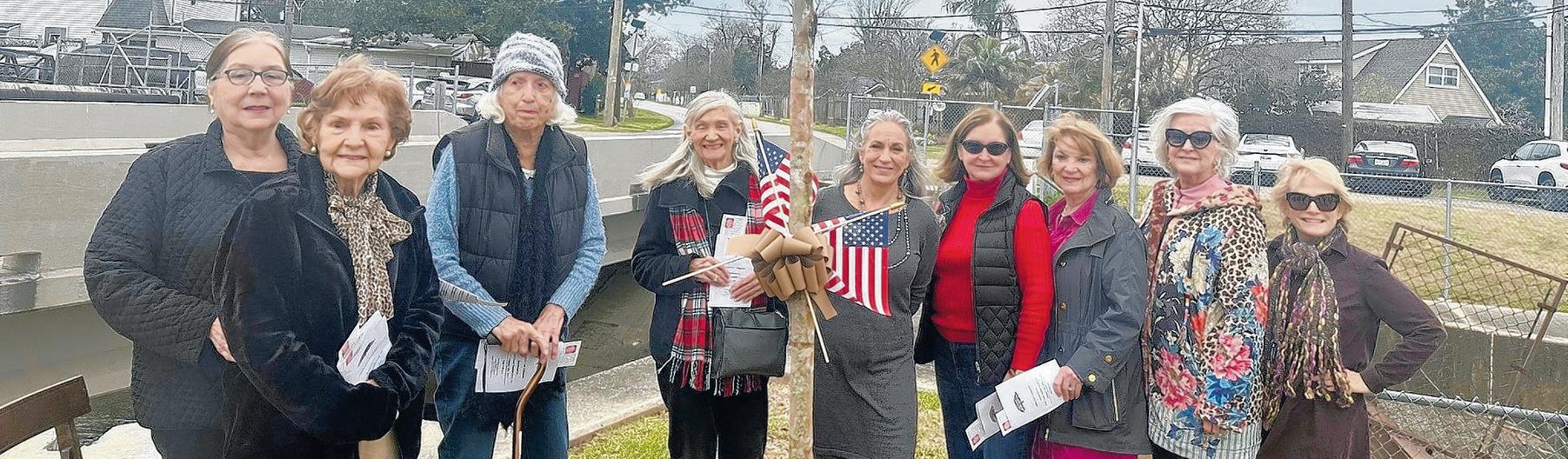 In an Arbor Day Ceremony on Feb 18, members of the Shady Oaks Garden Club in River Ridge dedicated a crape myrtle to Charlie Bennett, the late husband of Elite member Josie Bennett. Charlie and Josie Bennett were married for 73 years before his passing at age 96. Those present for the dedication were, from left, the Bennetts’ daughter, Leslie Breaux; Josie Bennett; and committee members Caroline Frederic, Merle Guerin, Loli Modica, Jennifer Weidig, Mary Ellen Miller, Marian Gibbs and Kathy Maffei.