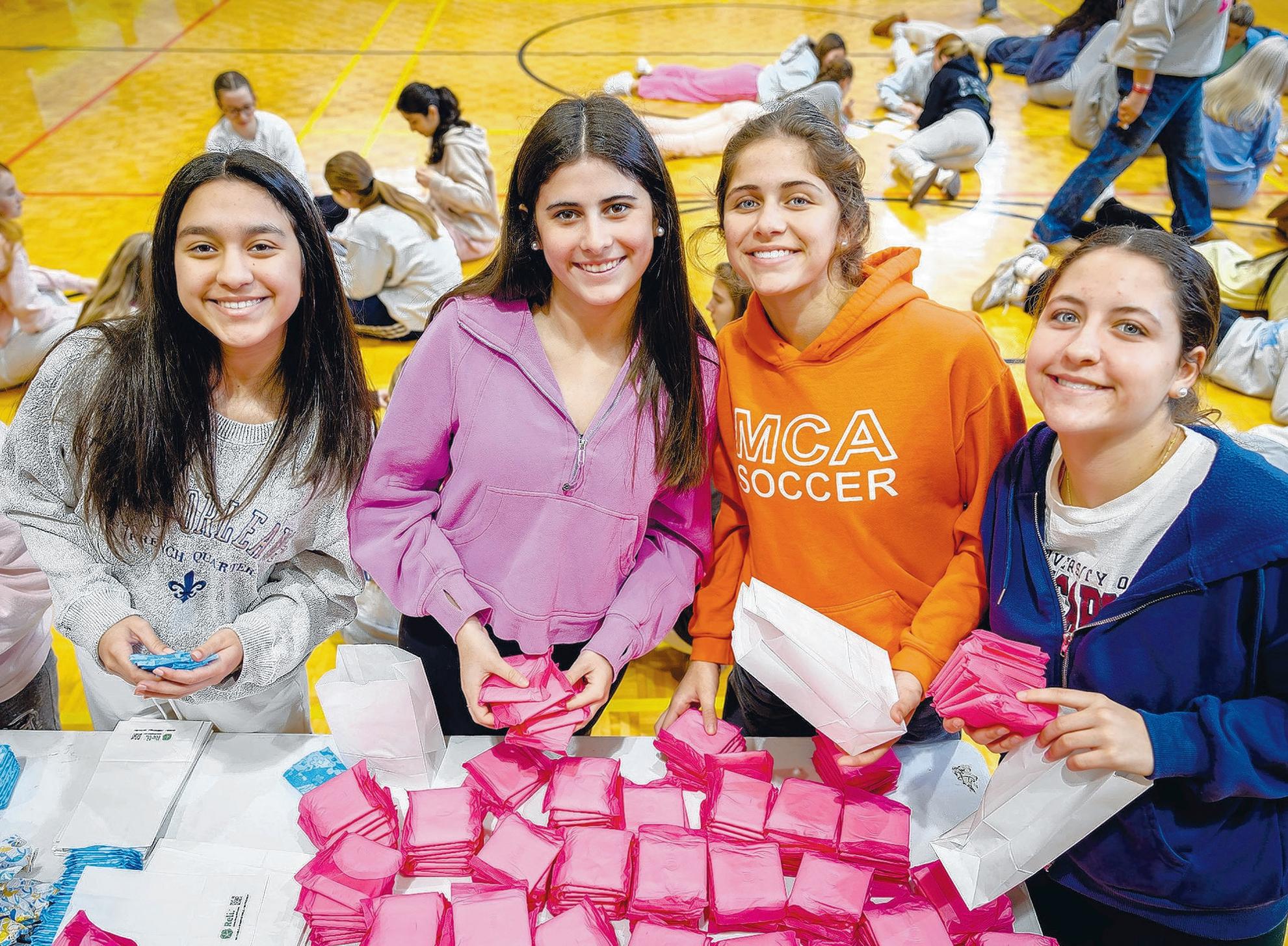 supplies as part of Mount Carmel’s Sophomore Day of Service are, from left Carmen Nuila, Leighton