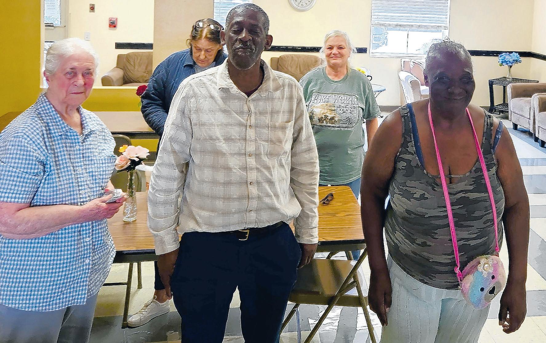 Assisi Heights residents had refreshments and bingo in celebration of April birthdays. Attending are, from left, Peggy Pittman, Wilbert Riley, Vivian Canoy, Patricia Fourrier and Linda Stevens.