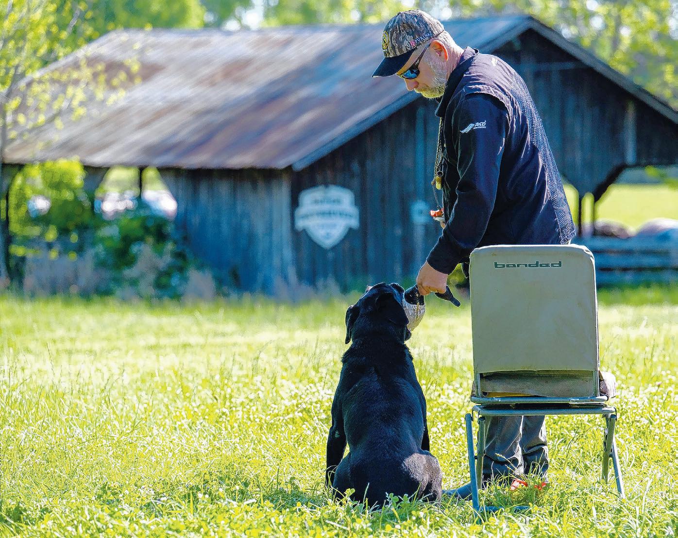 Handler Luke Cour takes the final duck from Cruz to finish their attempt at the retriever trials.