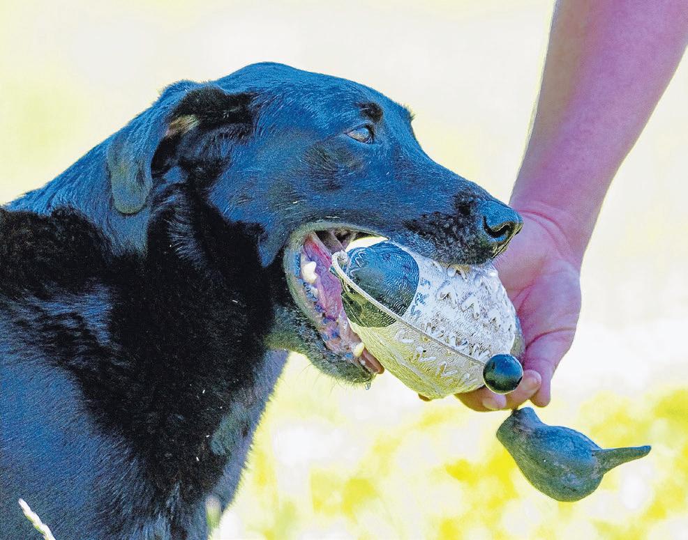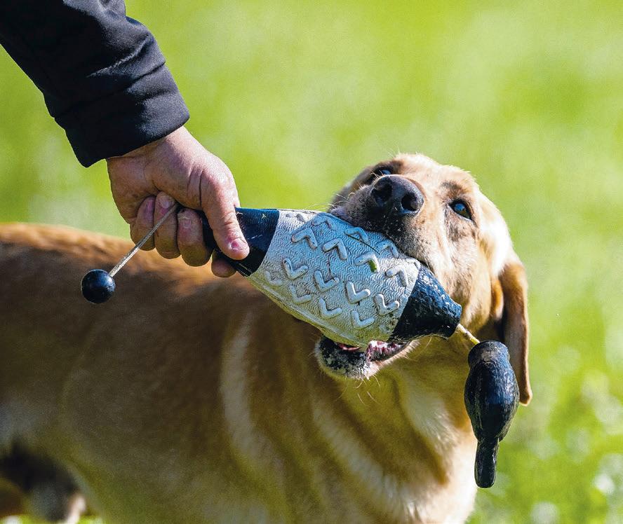 Piper returns to handler Scott Greer with a decoy duck.