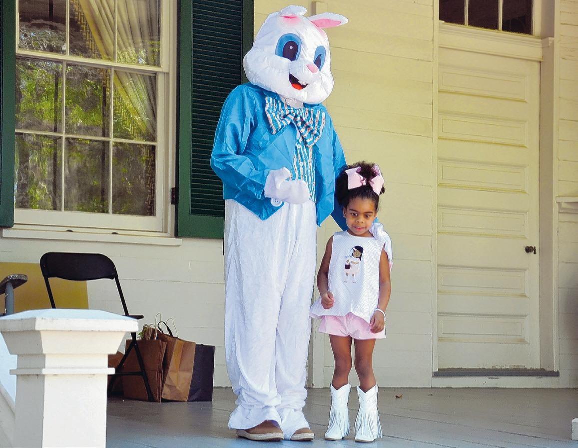 Maddie Barnes visits with the Easter Bunny on Saturday at the 19thCentury Easter Egg Hunt held at Rosedown State Historic Site. ä See EGG, page 3G