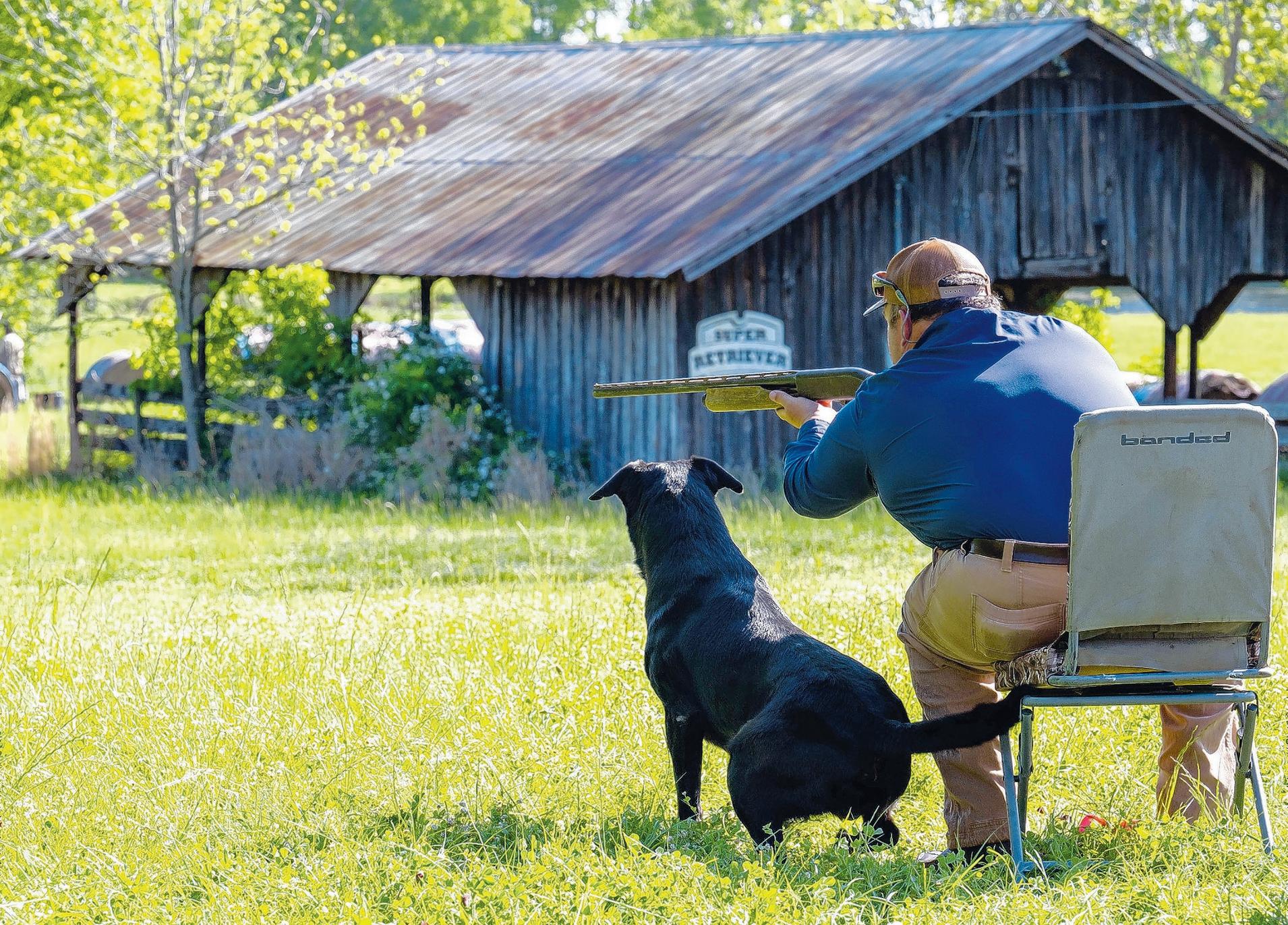 Handler Leo Joseph III and dog Coal get ready for the first decoy duck to be tossed at the retriever trials
