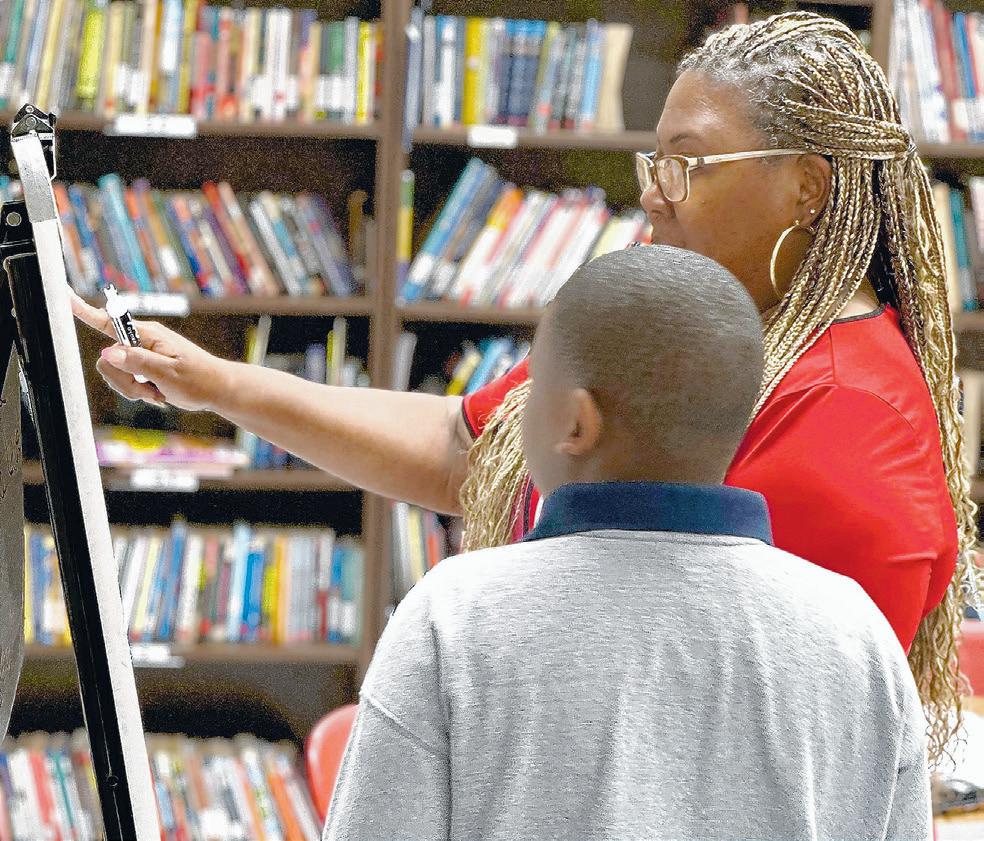 Exceptional Student Services Director Latrice Smith works one-on-one with student Jermaine Walker at Jackson Elementary School on March 13. Central office staff have been working with individual students and small groups as state testing approaches to ensure that every student has the specific support they need
