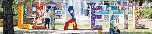 ArtistAmelia Smith,ofEunice,paints the Lafayette sign at Parc Sans Souci in Lafayette earlier this week. Smith said that she painted the sign, with the help of her 12-year-old daughter Olivia, to represent sights of South Louisiana familiar to her,likeegrets, crawfish and magnolias, as well as to showcase Lafayette, FestivalInternational and its sponsor LFT Fiber