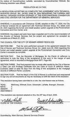 By virtue of a Writ of Seizure andSaledi‐rected to me by theHonorable Judges of Civil District Court forthe Parish of Orleans, in the aboveentitled cause, Iwillpro‐ceed to sell by public auction, on theground floor of theCivil District Court Building,421 Loyola Avenue in theFirst Dis‐trictofthe City on June 5, 2025, at 12:00 o'clock noon,the fol‐lowing de‐scribedprop‐erty to wit: 3506 DERBY PLACE LOTB,SQUARE E, THIRDMUNICI‐PALDISTRICT, DERBYPLACE SUBDIVISION ACQUIRED MIN 967706 WRIT AMOUNT: $80,610.99
