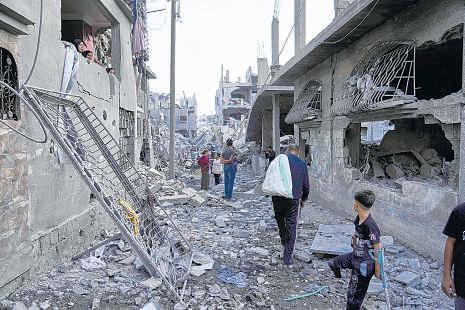 ASSOCIATED PRESS PHOTO By JEHAD ALSHRAFI Palestinians inspect the rubble of homes destroyed by Israeli airstrikes in Jabalia, northern Gaza Strip, on Wednesday. According to local hospitals, 50 people were killed in the strikes including 22 children.