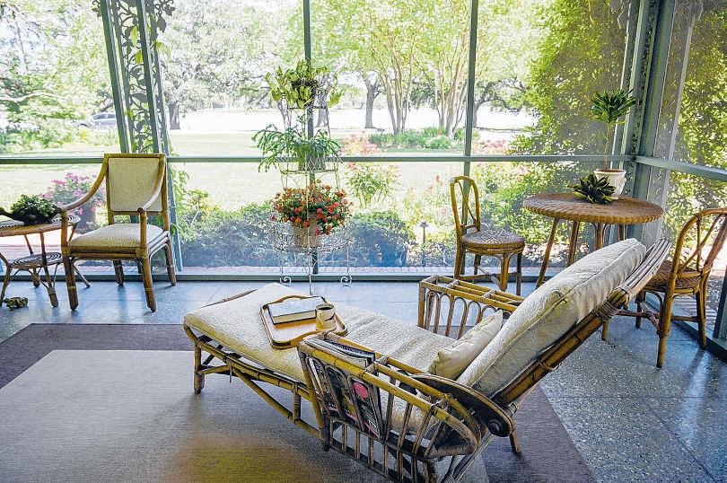 Last year,the Wagers had the screens replaced and the frames repainted,but theykeptitperiod-appropriate withthe original terrazzo floors andamix of midcenturyfurniture.