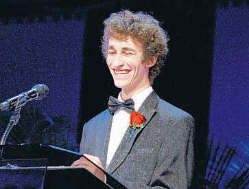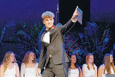 Valedictorian Daniel King laughs at one of the many little humorous barbs he delivered in his valedictory address.