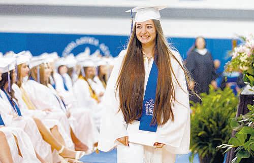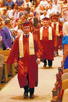 Archbishop Hannan High graduate candidates file into commencement at First Baptist Church on May 17.