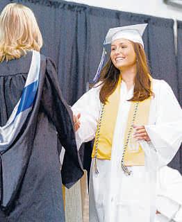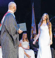 Jane Edwards receives her diploma from Head of School Sheri Gillio.