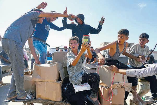 Crowds were seen running from the site. A few managed to secure aid boxes — containing basic items like sugar, flour, pasta and tahini — but the vast majority left emptyhanded.