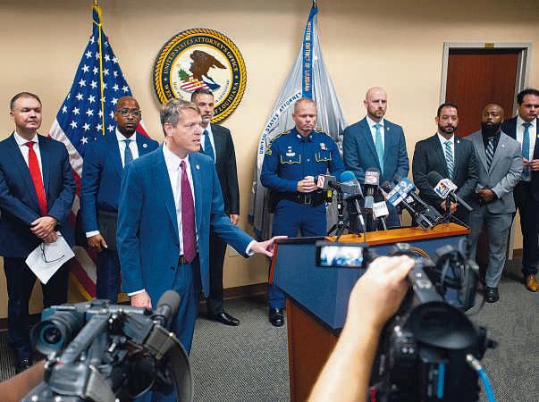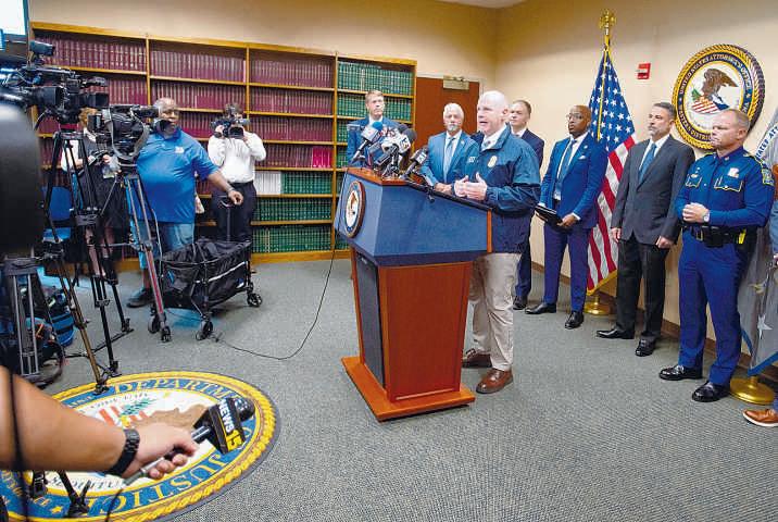 Homeland SecurityInvestigations Special AgentinChargeEric Delaune speaks during anewsconference WednesdayinLafayette announcing theindictment of five individuals, including lawenforcement officers, on fraud and conspiracycharges.