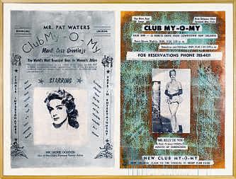 Look for the marvelous collage/painting by J. Cletus Wilcox, which reproduces vintage advertisements from the bygone Club My-O-My drag bar From the 1940s to 1970s, the audacious Metairie nightspot was the home of “The World’s Most Beautiful Boys in Women’s Attire.”