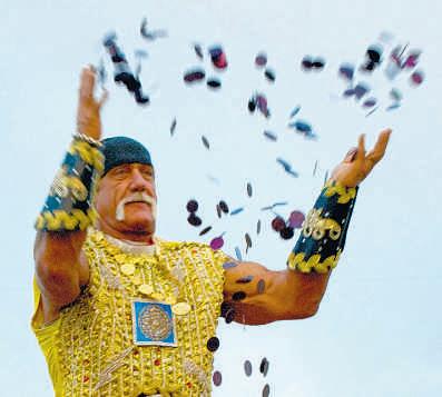 STAFFFILE PHOTOByMATTHEW HINTON Hulk Hogan throws Bacchus Doubloons at the startofthe 40th Bacchus Parade in 2008.