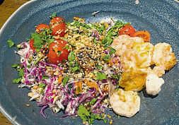 When Iordered the salad the second time, Isubbed the shrimp for fried chicken, which certainly offered adifferent, more smoky flavor profile, but it was just as good. This salad is adish that I know I’ll go back to multiple times when I’m craving something fresh.