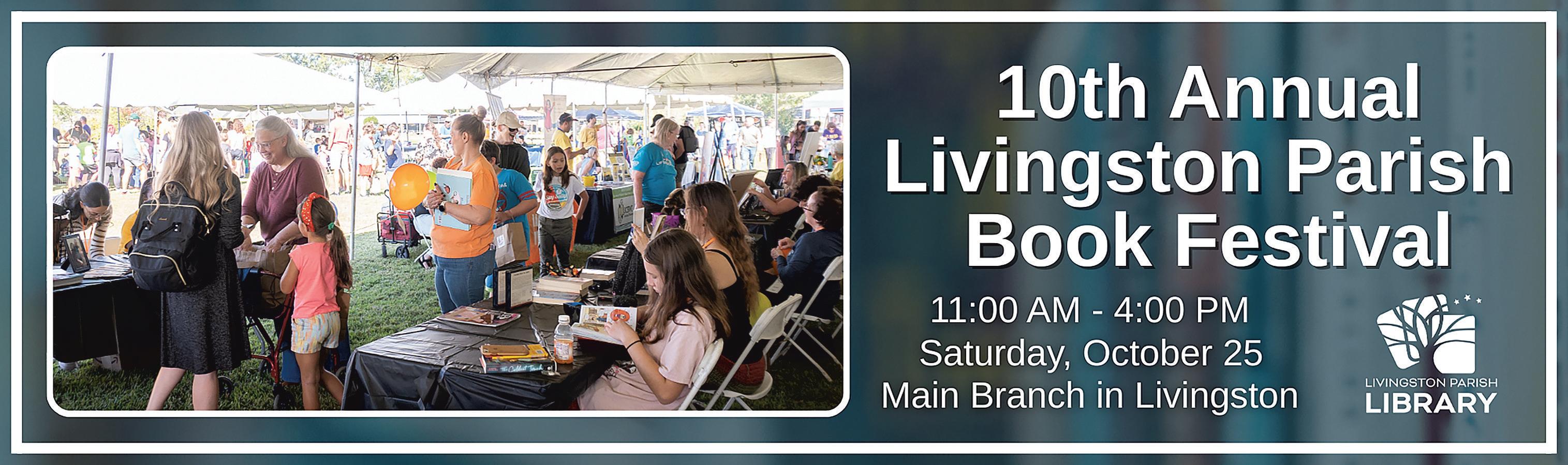Celebrate a decade of literary magic at the 10th annual Livingston Parish Book Festival, scheduled from 11 a.m. to 4 p.m. Saturday, Oct. 25, at the Livingston Parish Library’s Main Branch in the Town of Livingston. This event is open to all ages, and there is no cost to attend.