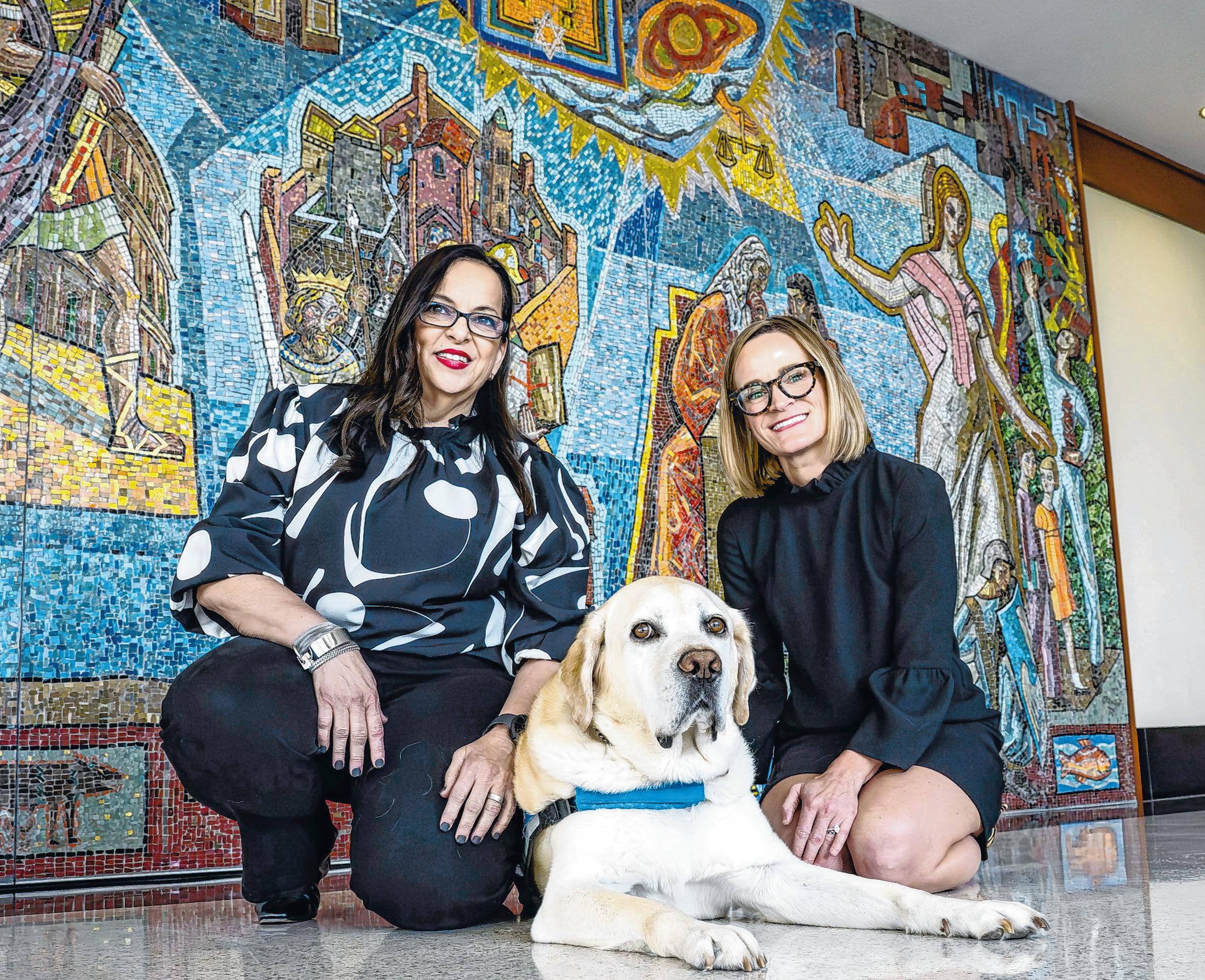 Diesel poses with his handler, Mona Gills-Collins, left, and owner, Judge Louise Hines, outside the courtrooms at the 19th Judicial District Court in Baton Rouge.