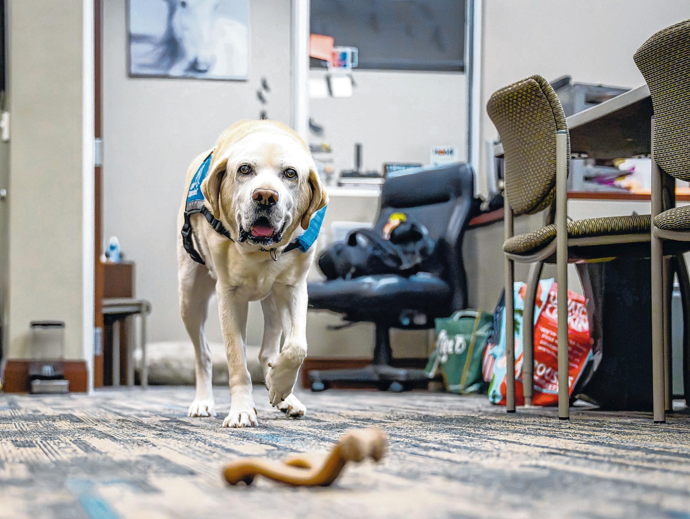 Diesel is on loan from Canine Companions, a dog training agency that breeds Labrador-golden retriever mixes to become facility dogs.