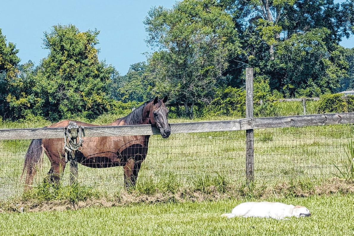 PROVIDED PHOTO BY LOUISE HINES Diesel relaxing with his beloved friend (and horse) Charlie at Mona GillsCollins’ home after a long week at the office.