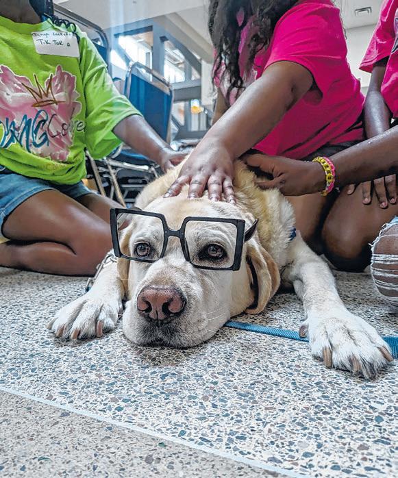 Children from OMG, the Outstanding Mature Girlz conference, play with Diesel. The group was formed to create fun, informative public awareness platforms for girls in the Baton Rouge area.