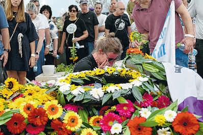 People mourn at the grave of Hadar Goldin, an Israeli soldier killed in Gaza in 2014 and whose body had been held there until it was released Sunday.