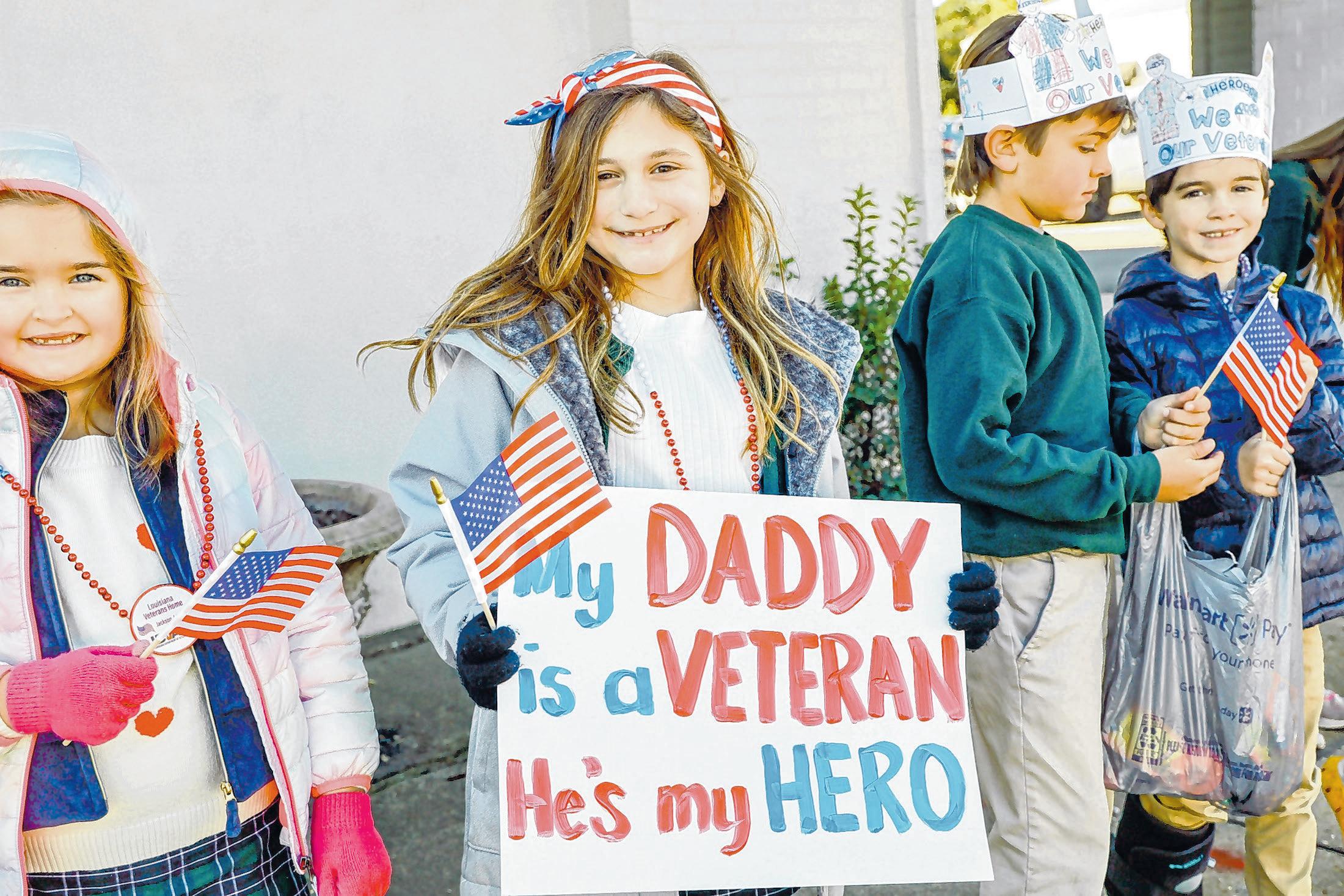 Zachary Learning Academy second grader Joelle Jones, 8, honors her father during the Veterans Day Parade in Zachary on Nov 11.