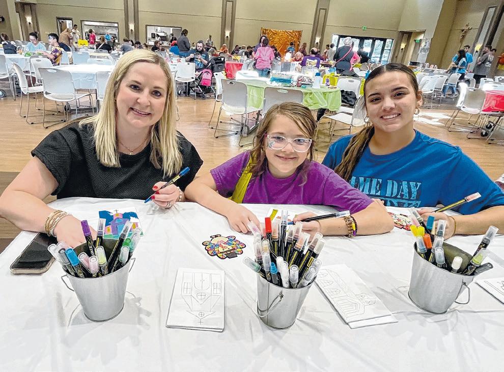 Naomi Mire, of Prairieville left and her 11-year-old daughter, Zoey, decorate ornaments with St. Michael High School junior Katherine Helfrich. The Fall Family Fun Day offers various family-friendly