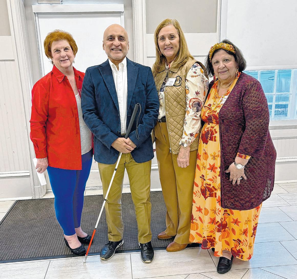 The November program at the Metairie Woman’s Club featured former meteorologist Carl Arredondo, whose progressive eye disease caused a midlife shift to becoming a certified trainer for those facing blindness and a certified CrossFit trainer for persons with disabilities. With Arredondo are, from left, Freddie Landry, Andrea Palmer and Darlene Cavalier
