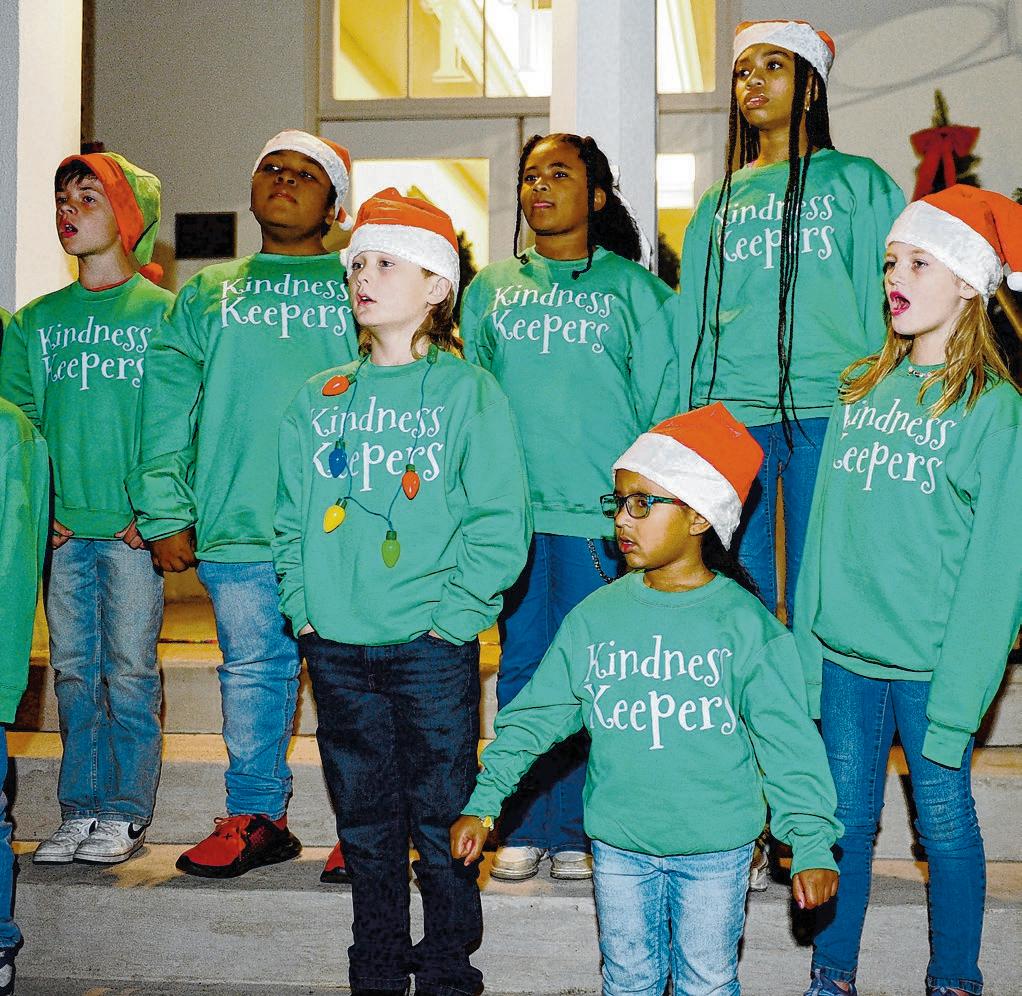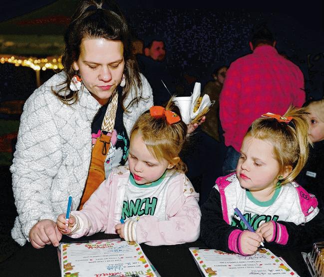 Luke 10:21 Church’s Kindness Keepers perform Christmas carols. Charlie Harries, 5, center, writes a letter to Santa as her mother, Hannah Harris, and twin, Josie watch.