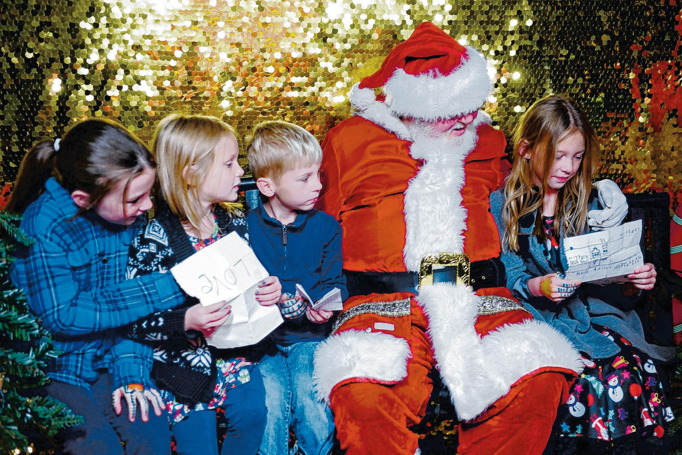 Eight-year-old Charlotte Nettles, right, reads her letter to Santa as her siblings Lyla Nettles, 9, from left, Hannah Nettles, 6, and Michah, 6, wait their turn Nov. 28 at City Hall. Denham Springs began the countdown to Christmas with the 10th annual lighting of Old City Hall on Nov. 28. More on 2G.
