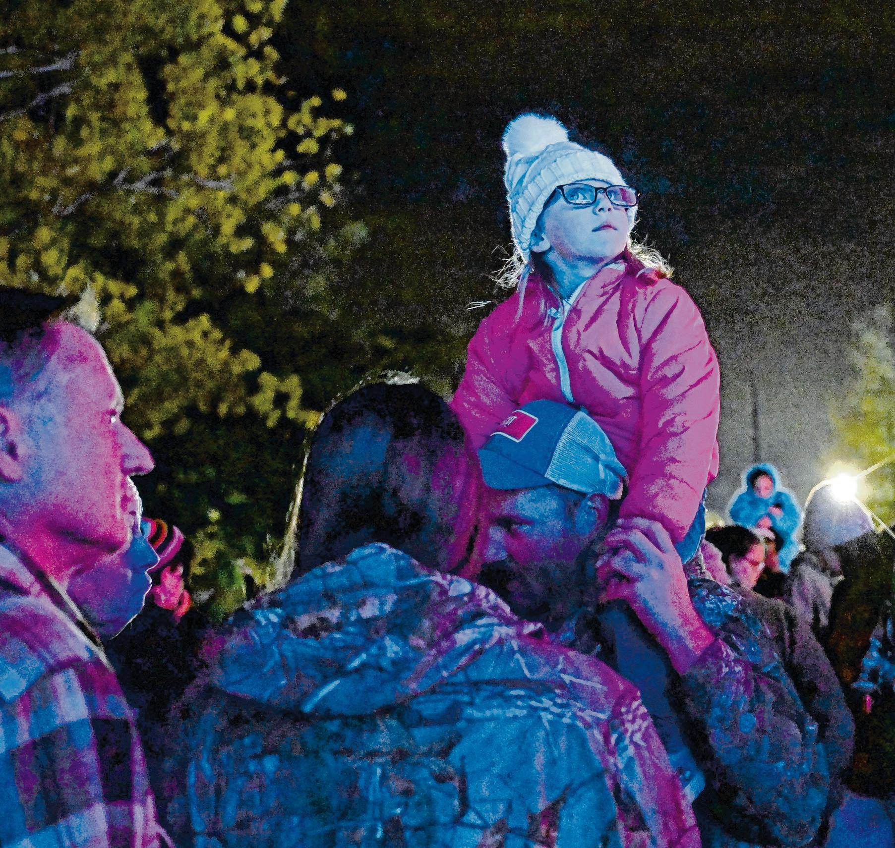 Brooklyn Villenurve 5, watches from the shoulders of her dad David Villenurve as the CPKC Holiday Train stops in Gonzales.