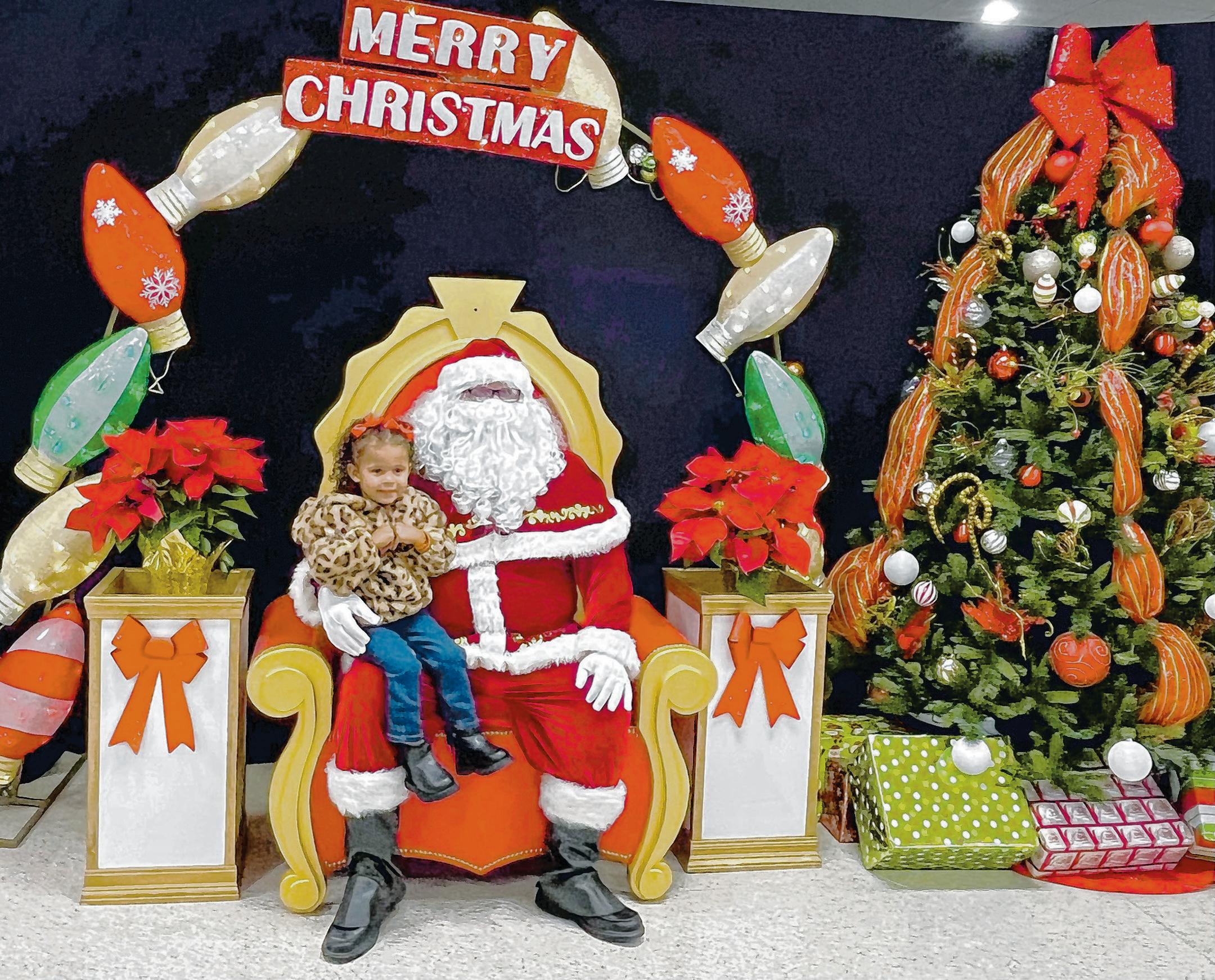 Three-year-old Za’riah Johnson, of St Amant takes pictures with Santa Claus Friday during the city of Gonzales’ annual Christmas tree lighting ceremony.