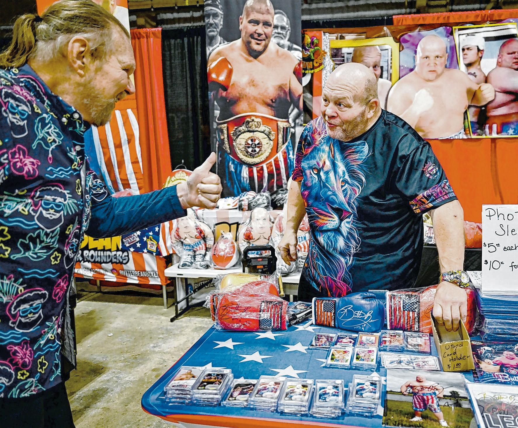 Wrestler ‘Hacksaw’ Jim Duggan gives a thumbs up to boxer Eric ‘Butterbean’ Esch during Cajun Con at Lamar Dixon Expo Center on Saturday.