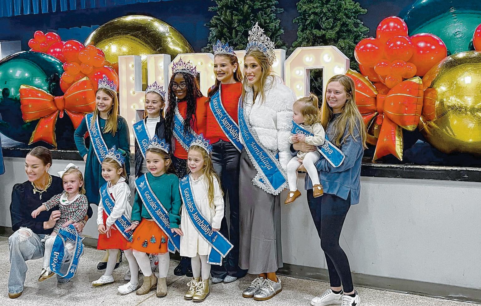 2025 Jambalaya Festival pageant royalty court pose Friday during the 32nd annual Gonzales Christmas tree lighting ceremony. Festivities were moved inside the Civic Center due to rainy weather