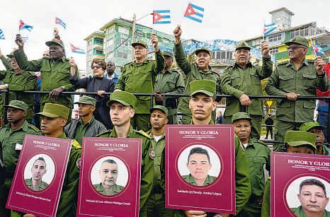 After the president’s speech, the demonstration transitioned into a parade that Cubans call a “combatant march,” a custom that originated during the time of Fidel Castro. The crowd was led by a line of people holding pictures of the 32 officers killed “Down with imperialism!” the crowd yelled. “Cuba will prevail!