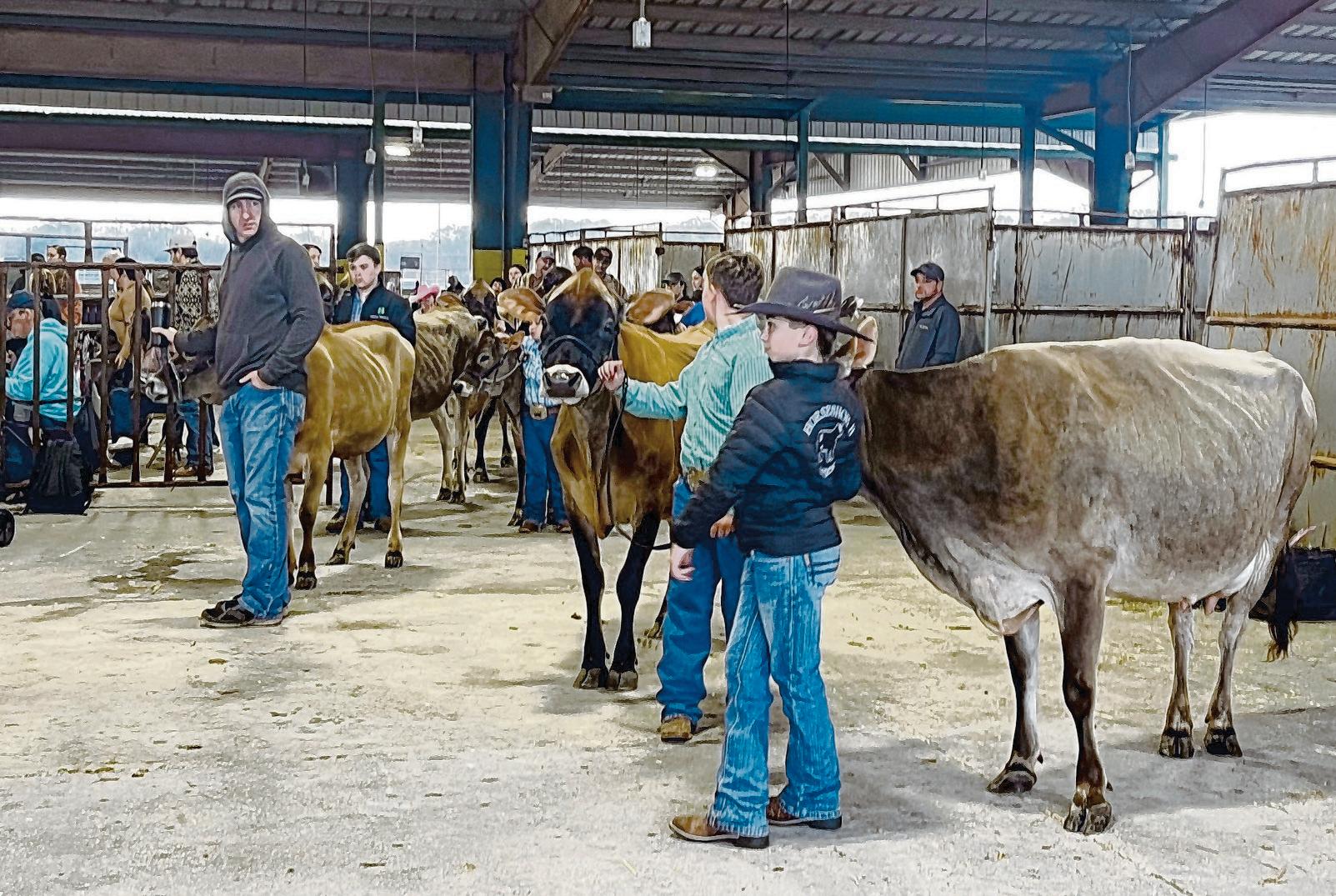 Hudson Clements, 15, and his sister, Rogue, 14, both of St. Amant, displayed their jersey cattle for judges.